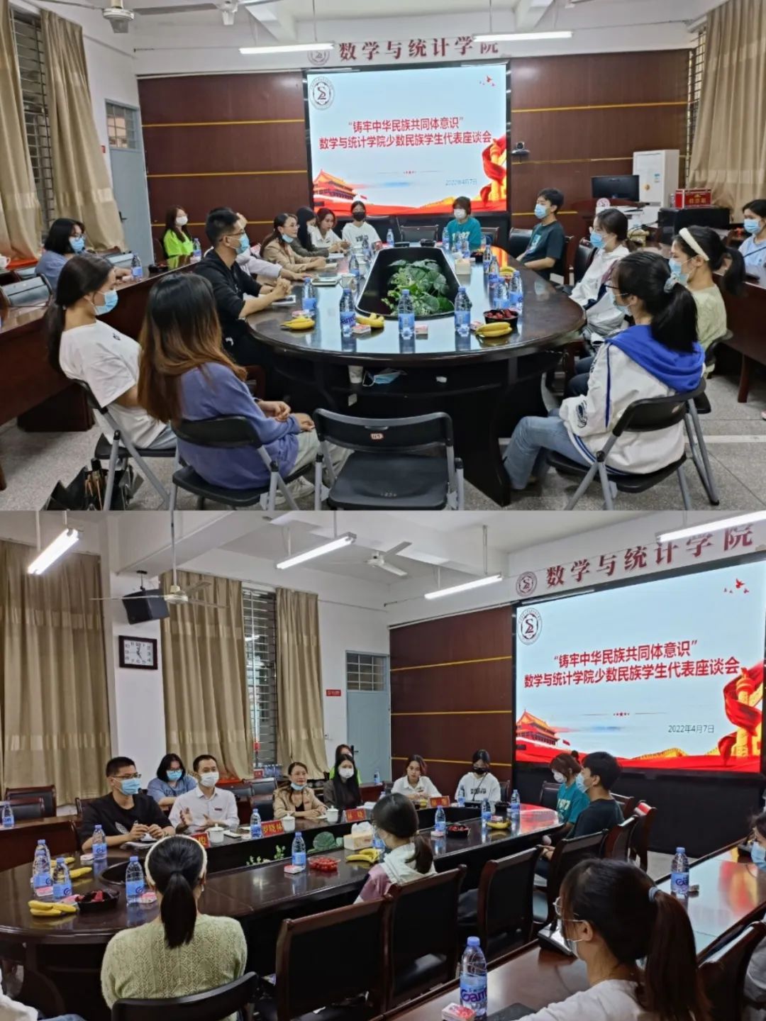 在砺志楼114会议室召开“铸牢中华民族共同体意识”为主题的少数民族学生代表座谈会。学院党委副书记林晓老师、院团委书记罗晓林老师、各年级辅导员老师和少数民族学生代表参加座谈会。