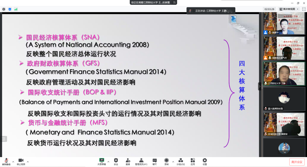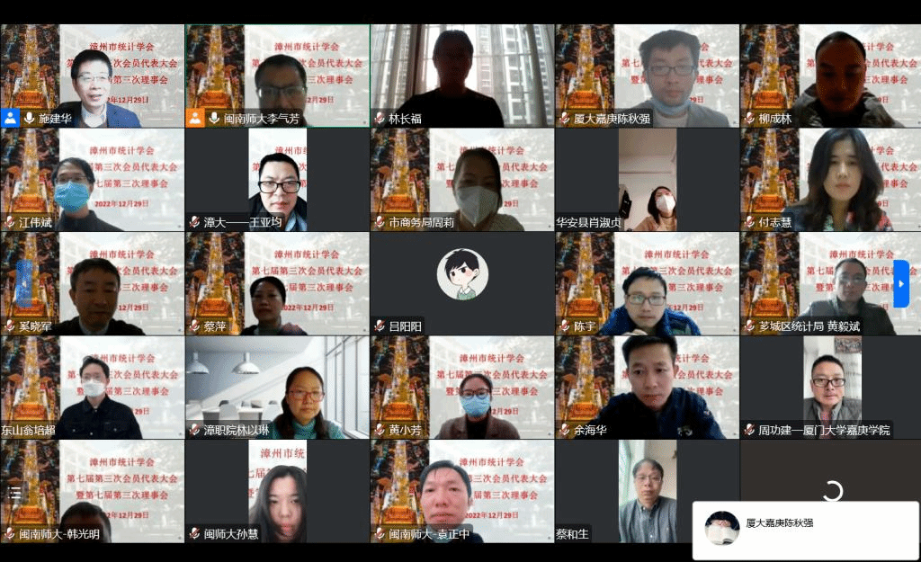 12月29日,漳州市统计学会七届三次会员代表大会暨七届三次理事会在漳州召开。受疫情影响,本次会议以线上方式举行。学会理事、会员代表共计40余人参加大会。大会由秘书长李气芳博士主持。漳州市科协学会部、漳州市统计局等单位对本次会议的召开给予大力支持。