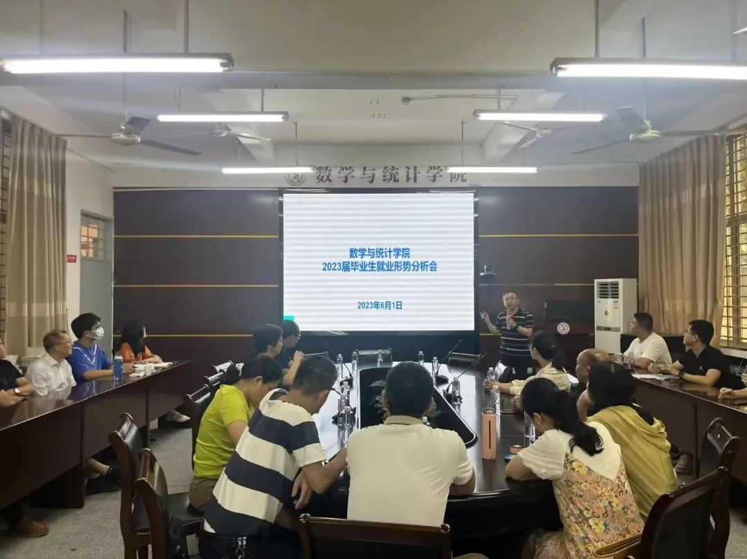 5月29日上午,数统学院领导班子于砺志123召开2023届毕业生就业形势专题研判会。会上,毕业生辅导员汇报了2023届毕业生目前的就业情况,领导班子针对今年就业工作存在的困难和问题,对如何引导学生转变就业观念,如何加强改进就业工作的举措,如何帮助2023届毕业生就好业、好就业展开了深入研讨。