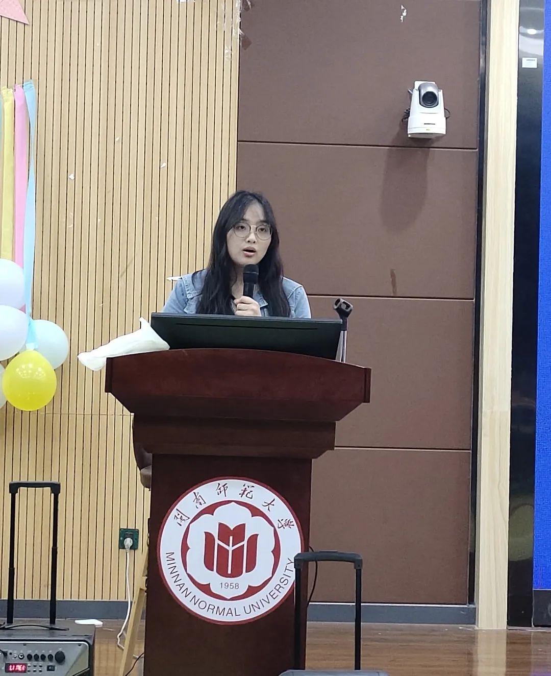 晚会抽奖活动,由在场老师随机抽取中奖号码,并颁发奖品。本次抽奖活动为晚会增添了一份神秘感和期待,让每位参与者都能感受到活动的乐趣和惊喜。前研究生会主席马云凤学姐也对这三年的所学所感进行分享。