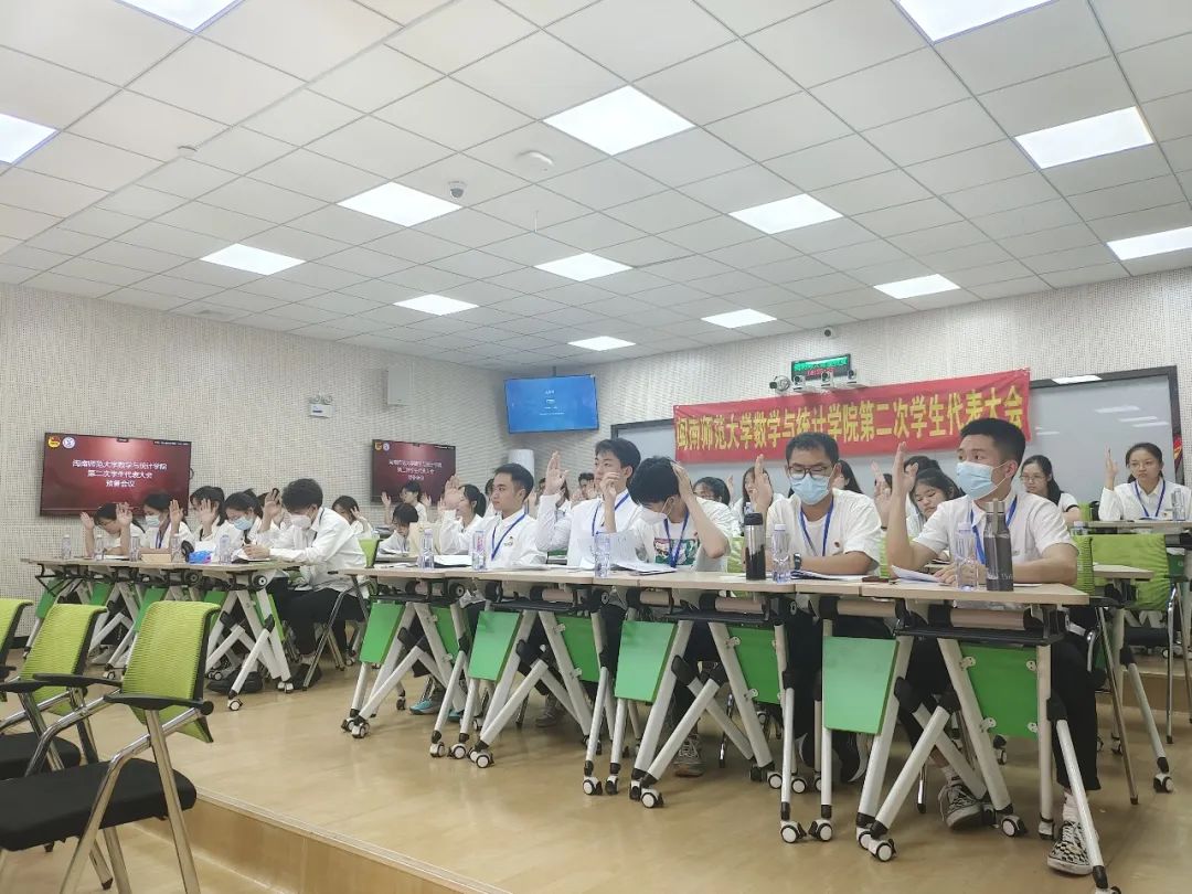 在砺志楼131教室召开了第二次学生代表大会。院团委负责人郑珊老师、19级辅导员李伟俊老师、21级辅导员李巍婷老师、20级辅导员黄艺佳老师、22级辅导石伟琦老师莅临指导本次会议。