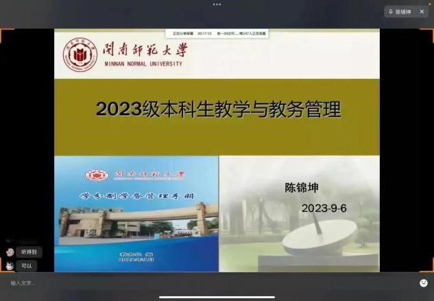 专业认知教育:9月6日下午,学院通过线下会议的方式对本科新生进行专业认知教育。学院副院长、数学与应用数学(师范)方向周仕荣老师,统计系主任李气芳老师,数据计算及应用专业王晓峰老师分别结合专业特色,围绕专业课程设置、学科特点、发展前景、培养目标、师资队伍等进行了重点介绍。励学生静心钻研,明数统学子使命和责任;助新生走好大学生涯每一步,展闽师数统学子风采。