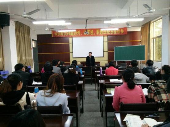 2014-2015下学期全体研究生会议在砺志楼114隆重召开。出席会议的有副院长蔡建平教授、党总支副书记张美容老师、研究生辅导员李气芳老师以及全体研究生。会议由蔡建平副院长主持。