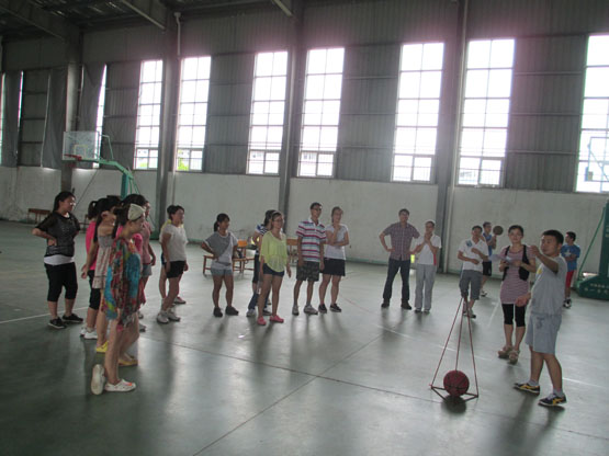本次趣味运动会以 “友谊第一,比赛第二”的宗旨,以 “娱乐身心,激扬青春“为主题。活动分为两类:活动一是团体记分赛,包括踢足球——羽毛球赛——篮球赛——兵乓球赛——跳绳赛;活动二是团体合作赛,包括两人三足——跳长绳。活动一开始,同学们分组进行、积极配合、争分夺秒、你追我赶,整个球类馆充满了欢声笑语、散满了辛勤汗水。