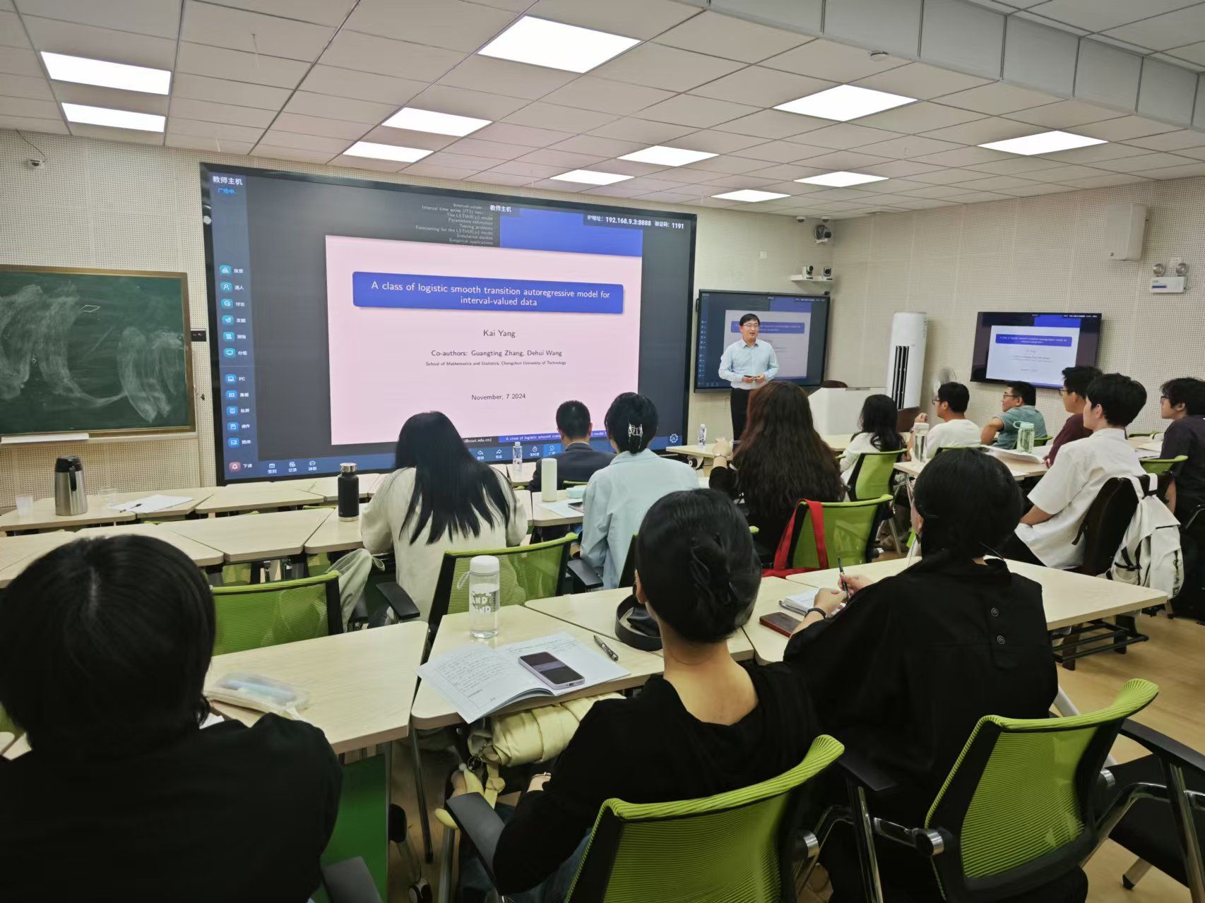 邀请,11月7日下午,长春工业大学杨凯副教授在砺志楼131作了题为《A class of logistic smooth transition autoregressive model for interval-valued data》的报告。相关师生聆听了此次报告,报告由吕阳阳老师主持。