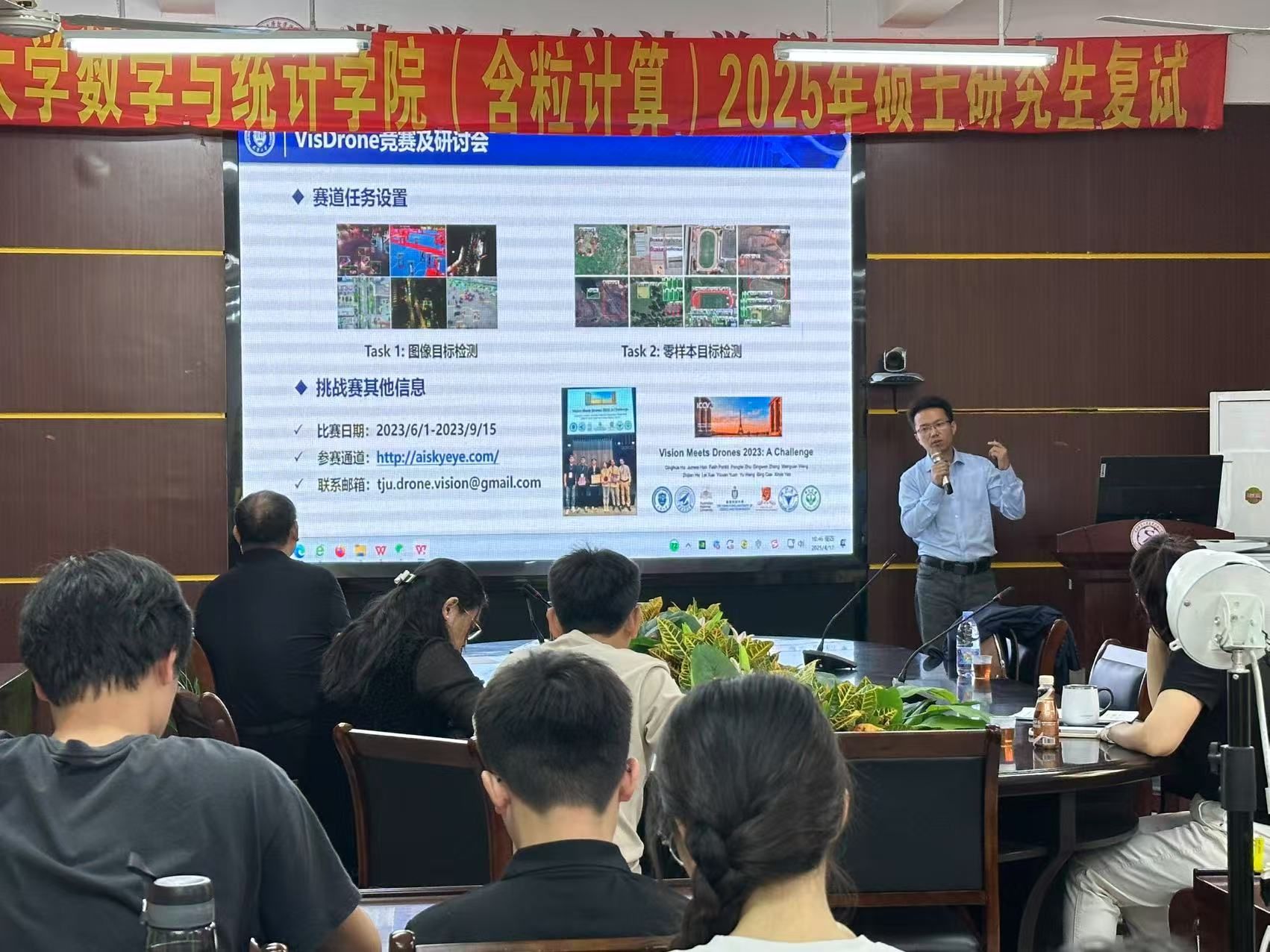 邀请,4月17日早上,天津大学智能与计算学部朱鹏飞教授在砺志楼114作了题为《低空智能感知关键技术及应用》的讲座。相关师生聆听了此次讲座,讲座由林国平老师主持。