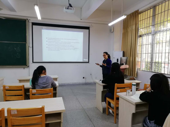 邀请,3月26日上午,山东大学冯俊娥教授在砺志楼105作了《Properties of Cheng Projection Matrix》的报告。相关师生聆听了此次报告。
