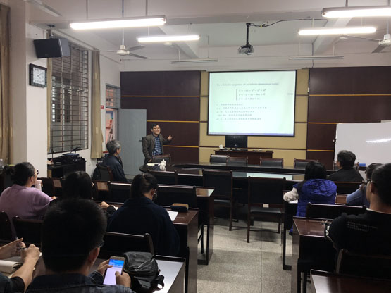 邀请,12月21日下午,玉林师范学院刘永建教授在砺志楼114作了《Attractor and Bifurcation of forced Lorenz-84 system》的报告。相关老师聆听了此次报告,报告由林梦雷院长主持。