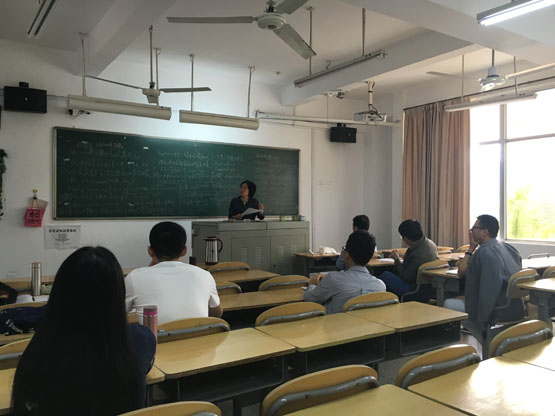 邀请,4月15日上午,华南理工大学吴敏教授在砺志楼301作了《一致维数与分形的齐性》的报告。相关老师聆听了此次报告,报告由李进军副教授主持。