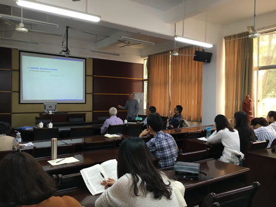邀请,11月3日上午,福建师范大学李名田博士在砺志楼114作了《Generic points of shift invariant measures in the countable symbolic space》的报告。相关老师和学生聆听了此次报告,报告由李进军老师主持。