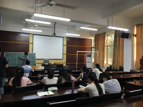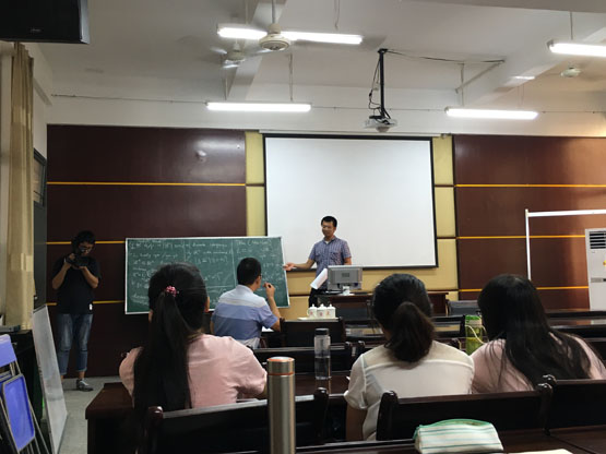 邀请,9月22日下午,厦门大学石荣刚副教授在砺志楼114作了《Hausdorff dimension of weighted singular vectors》的报告。相关老师和学生聆听了此次报告, 报告由李进军老师主持。