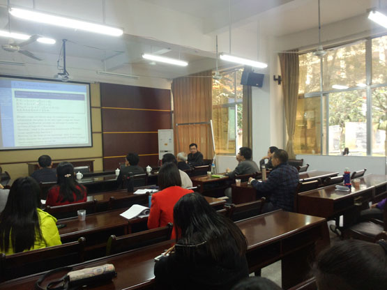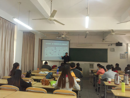在报告《The rough membership functions on covering-based rough sets and their applications in real life》中,葛洵副教授主要从Pawlak的现实背景以及最隶属函数的应用以及局限性的研究进行了详细的讲解。在报告《Quantititive analysis techniques in classroom teaching evaluation》中,葛洵副教对课堂生态系统的总体测量公式的相关数值的计算工和模糊决策在课堂生态系统定量测评在教学实践中的应用以及意义进行了详细的讲解。报告结束后,在座的老师和学生就相关研究问题进行了探讨和交流。