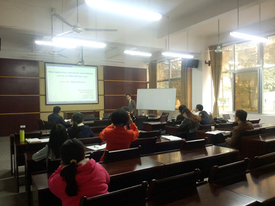 邀请,12月22日下午,日本岛根大学Jitsuro Sugie教授和 Akita Kamibeppu博士在砺志楼114分别作了一场《A new application method for hille-wintner type nonoscillation criteria》和《A fractional approach to boxicity of graphs》报告。相关老师和学生聆听了此次报告。报告由林福财副院长主持。