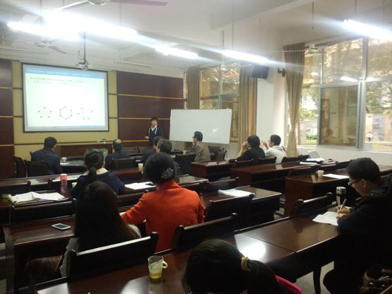 在《A new application method for hille-wintner type nonoscillation criteria》中,Jitsuro Sugie教授主要从Sturm-Liouville非振动线性微分方程背景进行介绍,并从扩展Hille-Wintner非振动线性微分方程的应用领域的主要结论进行了详细地讲解。在《A fractional approach to boxicity of graphs》中,Akita Kamibeppu博士对目前研究的成果以及接下来着手研究的内容进行了详细地讲解。报告结束后,在座的老师和学生就这些研究问题进行了探讨和交流。