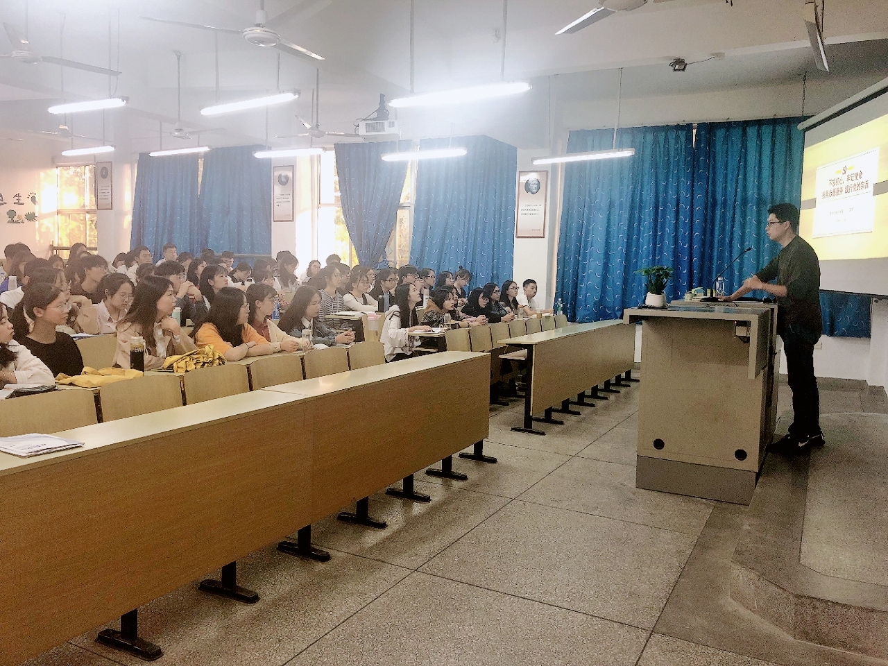 团委书记陈明在砺志楼130开展以“不忘初心、牢记使命,投身志愿服务、践行党的宗旨”为主题的专题党课。
