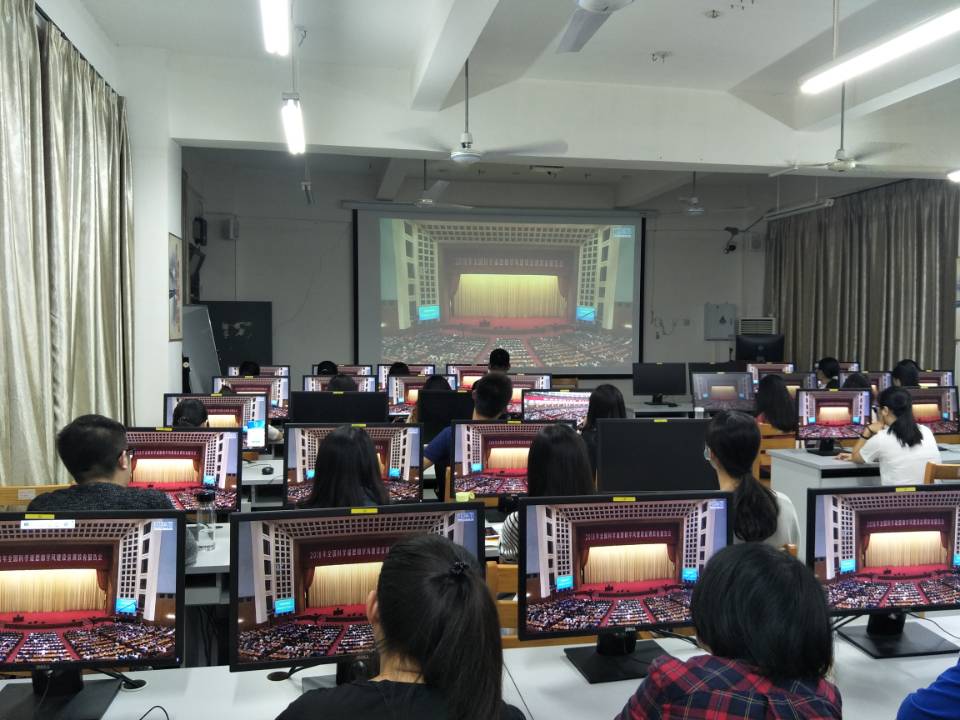 在砺志楼110组织师生收看2018年全国科学道德和学风建设宣讲教育报告会。