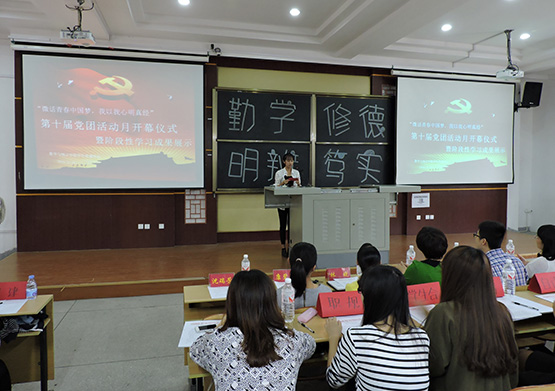 第十届“党团活动月”开幕式暨“梦之崛起——勤学修德、明辨笃实”系列活动在砺志楼120成功举办。学院党委副书记陈晶莹、党务秘书林晓、团委副书记陈明、学院辅导员、各大学生组织代表、学生党员、积极分子及15级全体同学参加了活动。