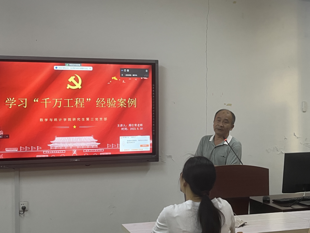 党委委员、副院长周仕荣教授为对接联系的研究生第三党支部开展党课专题学习《浙江“千万工程”经验案例》。