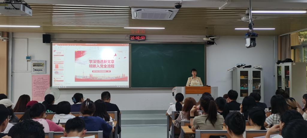 党委组织员方婷老师于砺志楼224教室为院分党校第二十五期入党积极分子上题为《学深悟透新党章 明晰入党全流程》的主题党课。