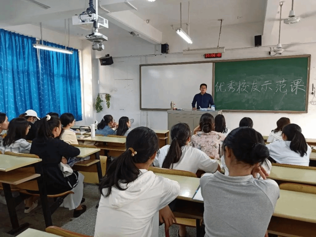 在砺志130开展的校友示范课上,邓历淮、陈君镇两位校友深厚的教学基本功、灵活开放的教学风格、对教材的精准把握让在座爱心助教老师领略到中学优秀教师的风采。随后两位校友与在座学生就教学、工作情况进行愉快交流,为同学们答疑解惑,分享有趣的相关经验。