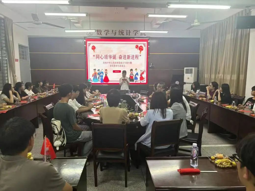在砺志楼114会议室举办“同心颂华诞, 奋进新进程”庆祝中华人民共和国成立75周年暨多民族学生座谈会。学院党委副书记胡海智老师、团委副书记郑珊老师、各级辅导员、学院各民族学生代表出席此次活动。
