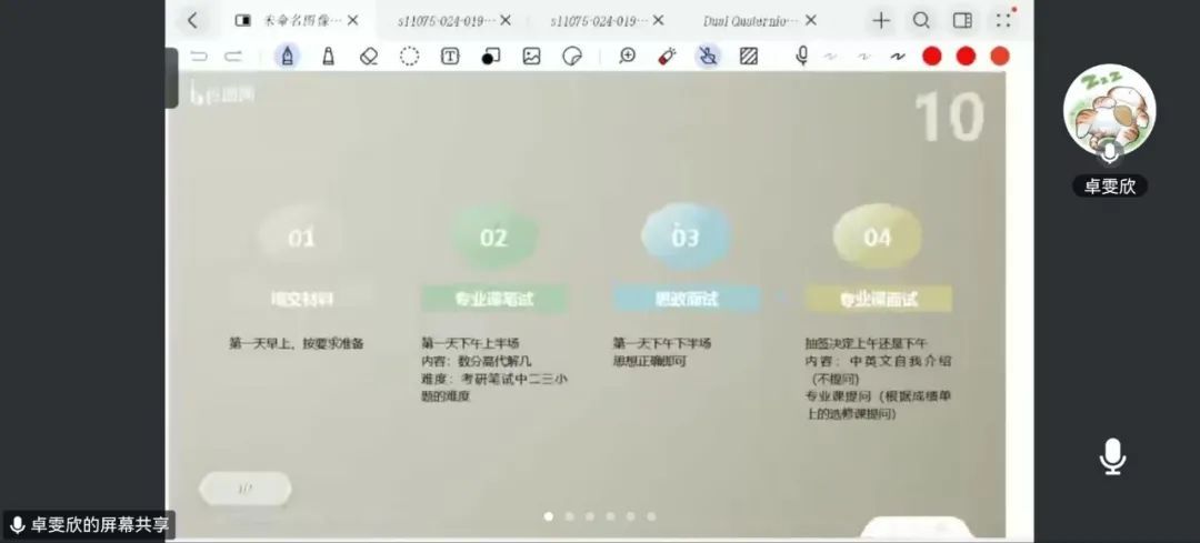 卓雯欣从复试流程和面试准备两个方面进行分享,她建议考生应全面复习基础知识,并通过多听多说来提升口语表达能力。在复试时,她鼓励大家积极调整心态,保持冷静与自信,以最佳状态展现自我,确保发挥出真实水平。