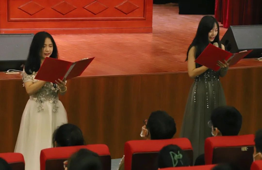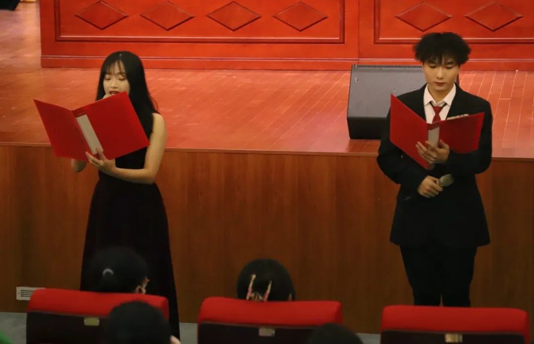 开学典礼正式开始前,由新老生合唱的歌曲串烧《爱人错过》+《你曾是少年》+《我的梦》+《当我们一起走过》烘托了典礼的氛围,接着由院演颂队带来的诗歌朗诵《青春拂晓 未来可期》表达出学长学姐们对22级学生最热烈的欢迎。