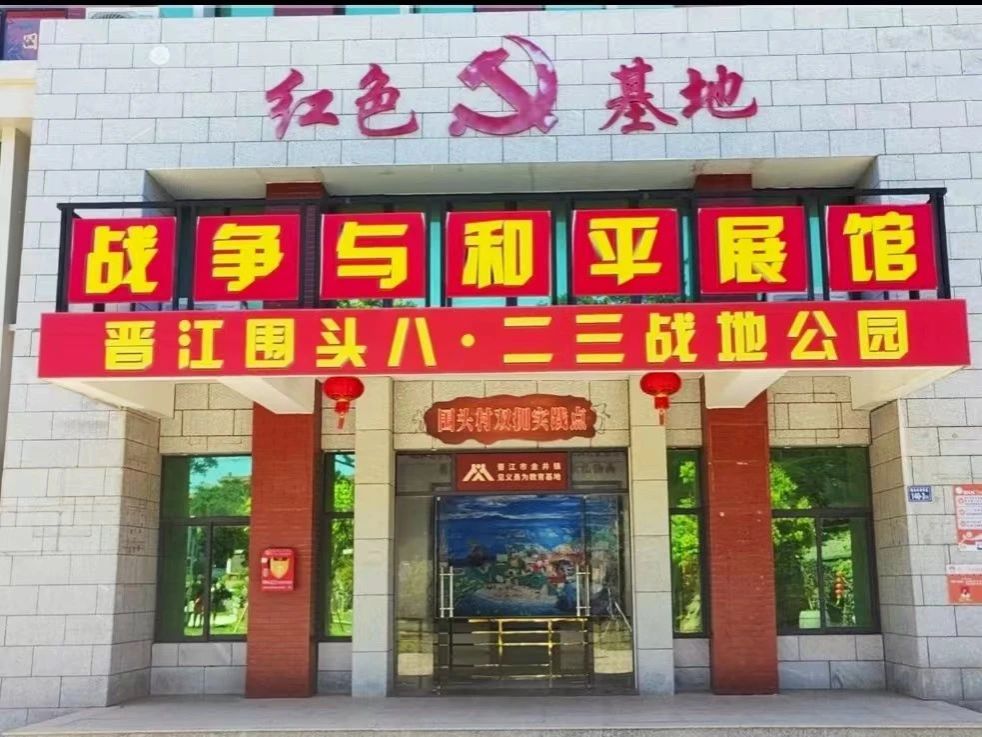 紧随其步伐,社会实践团踏入了晋江围头八•二三战地公园,于此开展一场深刻的实地考察之旅。潮涌复退,硝烟早已散尽,昔日的炮火中心如今依仗其保存完好的防御工事,化作了八•二三战地公园的壮丽景观。这座福建省的国防教育圣地,每一处遗迹都沉淀着围头的战斗记忆,传递着晋江人民为国家繁荣、人民幸福所付出的英雄壮志。行走在历史的长河中,实践队的队员们以晋江之魂为底蕴,勤于学习,善于领悟,立志成长为心怀家国的新时代青年。