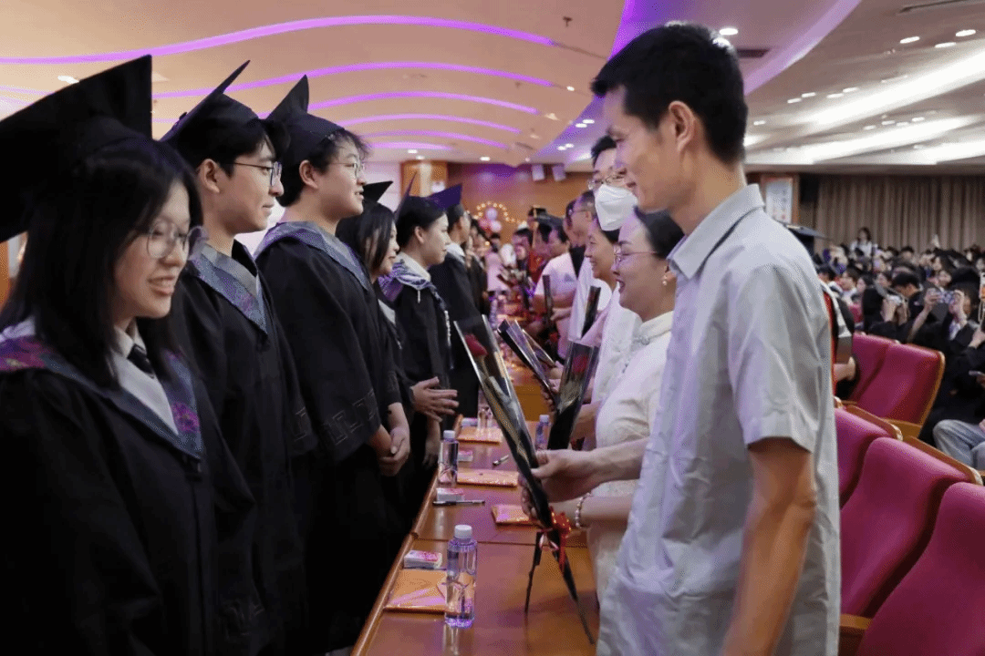 2024届学生毕业典礼暨毕业晚会于逸夫图书馆五楼报告厅隆重举行。学院党政领导、学位评定分委员会老师、全体辅导员及行政老师,2024届毕业生出席活动。 本次典礼由院党委副书记胡海智主持。