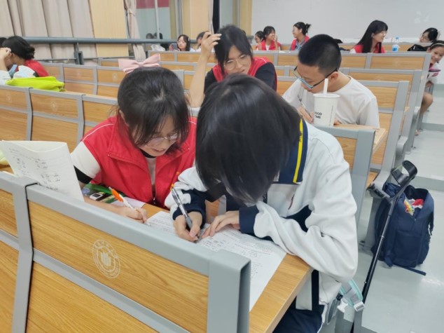 开班仪式结束后,辅导活动正式开始。活动现场有条不紊,教学有序,爱心助教老师耐心地为学生答疑解惑,学生们积极配合,氛围温馨融洽。
