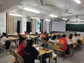 10月20日晚,在管理人员的引导下,爱心助教老师与学生悉数就座,学院党委副书记胡海智和指导老师李伟俊应邀出席。