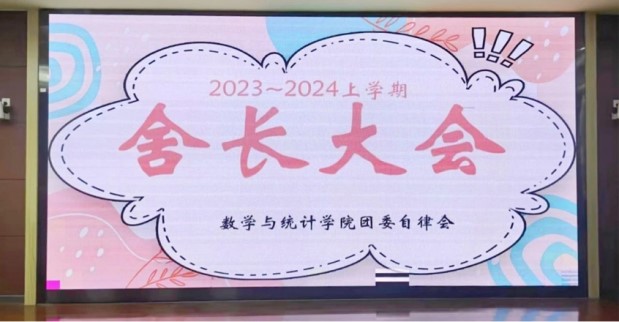 学生宿舍管理,落实落细宿舍安全相关工作,明确宿舍长的工作职责和要求,营造和谐温馨、积极向上的宿舍氛围,创建文明卫生、干净整洁的宿舍环境,11月4日,数统学院自律会在砺志楼120召开“2023-2024学年舍长大会暨星级宿舍、学风宿舍颁奖典礼”,学院党委副书记胡海智、团委副书记郑珊及22级辅导员、院自律会指导老师石伟琦出席本次大会,学院各年级舍长参加了本次大会。