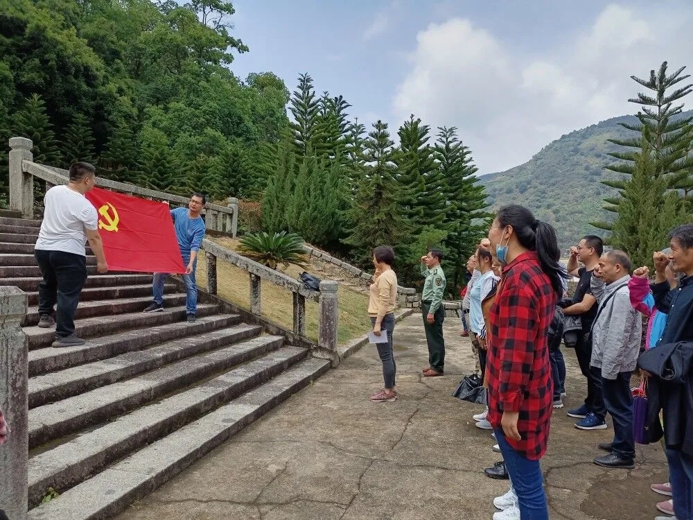 在平和暴动烈士纪念碑前,全体党员凝视着鲜红的党旗,右手握拳,进行庄严宣誓。通过重温入党誓词,牢记入党初心,铭记铮铮誓言,激励广大党员们牢记初心使命,传承优良传统,赓续红色基因。