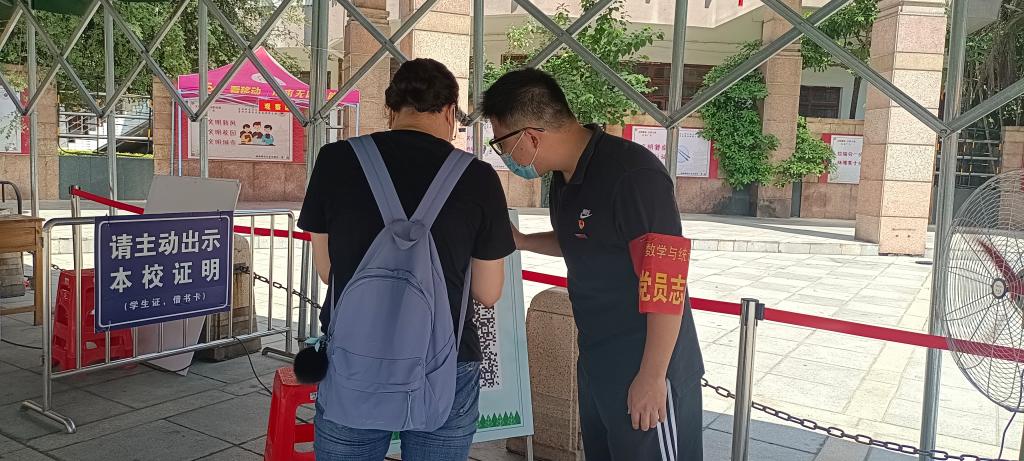 教工党员积极响应校党委的号召,充分发挥基层党组织战斗堡垒作用和共产党员的先锋模范作用,组成教工党员志愿服务队,积极参与到校园疫情防控志愿服务工作中,为常态化校园疫情防控工作贡献力量。
