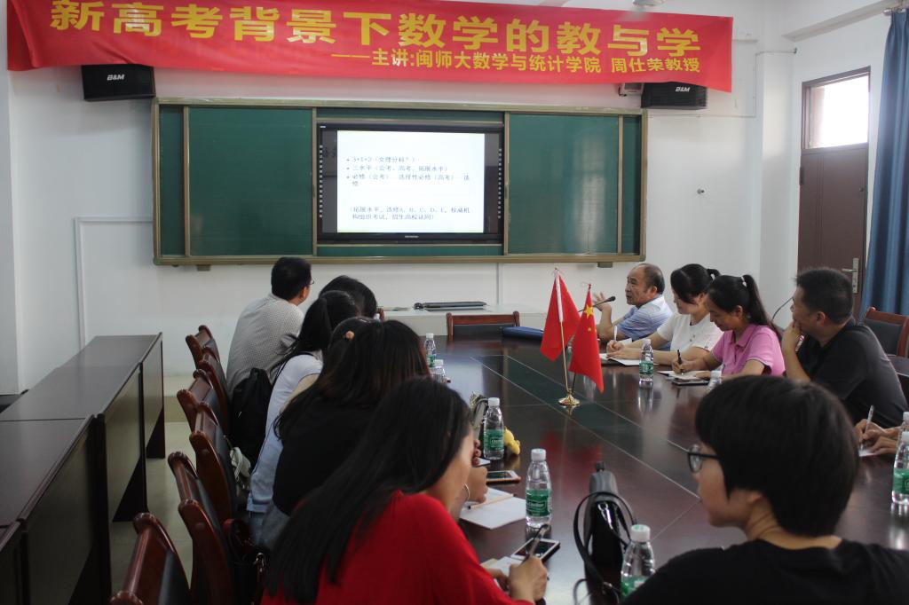 本次主题党日活动精心设置了“情对祖国讲,爱对祖国说——祝福语微视频”、“教师党员义务授课活动”、“庆华诞70周年,响素质教育号召——赠书交流活动”和“不忘初心,筑梦华章——素质拓展活动”四个系列活动。在系列活动中,云霄二中的留守儿童学生们在绘着“庆祝新中国成立70周年”的绚烂黑板报前,用马克笔在红色的卡纸上认真地写下他们对祖国的祝福;学院教工第一党支部书记、数学系主任周仕荣教授为云霄二中党员教师们讲授《新高考背景下数学的教与学》,积极对接服务地方基础教育。学院将爱心书籍交到学生手中,学院与二中共建的“‘常青数 快乐学’党员爱心书吧”将成为双方持续合作的纽带,把爱心传承和发扬光大,助力留守儿童学生健康成长。