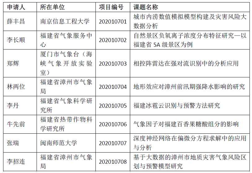 附件:数字福建气象大数据研究所开放课题立项名单