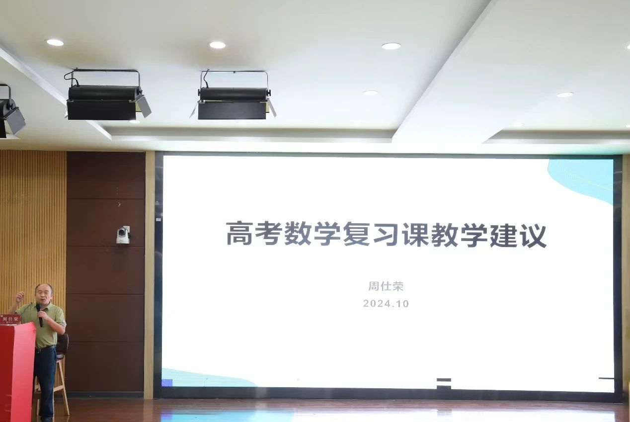 周仕荣教授作题为《高三数学复习课的教与学建议》的讲座。周仕荣教授认为2024年的高考数学更加注重对学生思维能力、创新能力以及应用能力的考查,强调数学核心素养如逻辑推理和数据分析等。教学建议回归课本,注重基础知识的理解与应用,避免机械训练。复习过程中提倡深度学习,鼓励学生批判性思考,将知识迁移至新情境中解决问题。高三复习课需帮助学生建立完整的数学知识框架,并通过反思改进来提升学习效果。