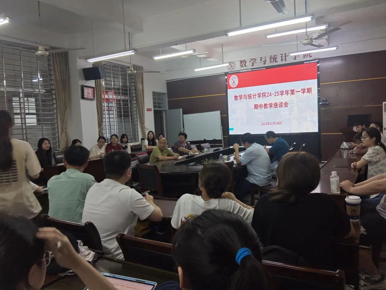 于砺志楼114召开2024-2025学年第一学期期中教学座谈会。本次会议旨在加强学院教学管理,深入了解教师教学情况与学生学习需求。学院分管教学副院长周仕荣、校督导组成员郑艺梅、院督导组长柳成林,各系(教研室)主任、教学秘书、各班代表及教学信息员参加此次座谈会。