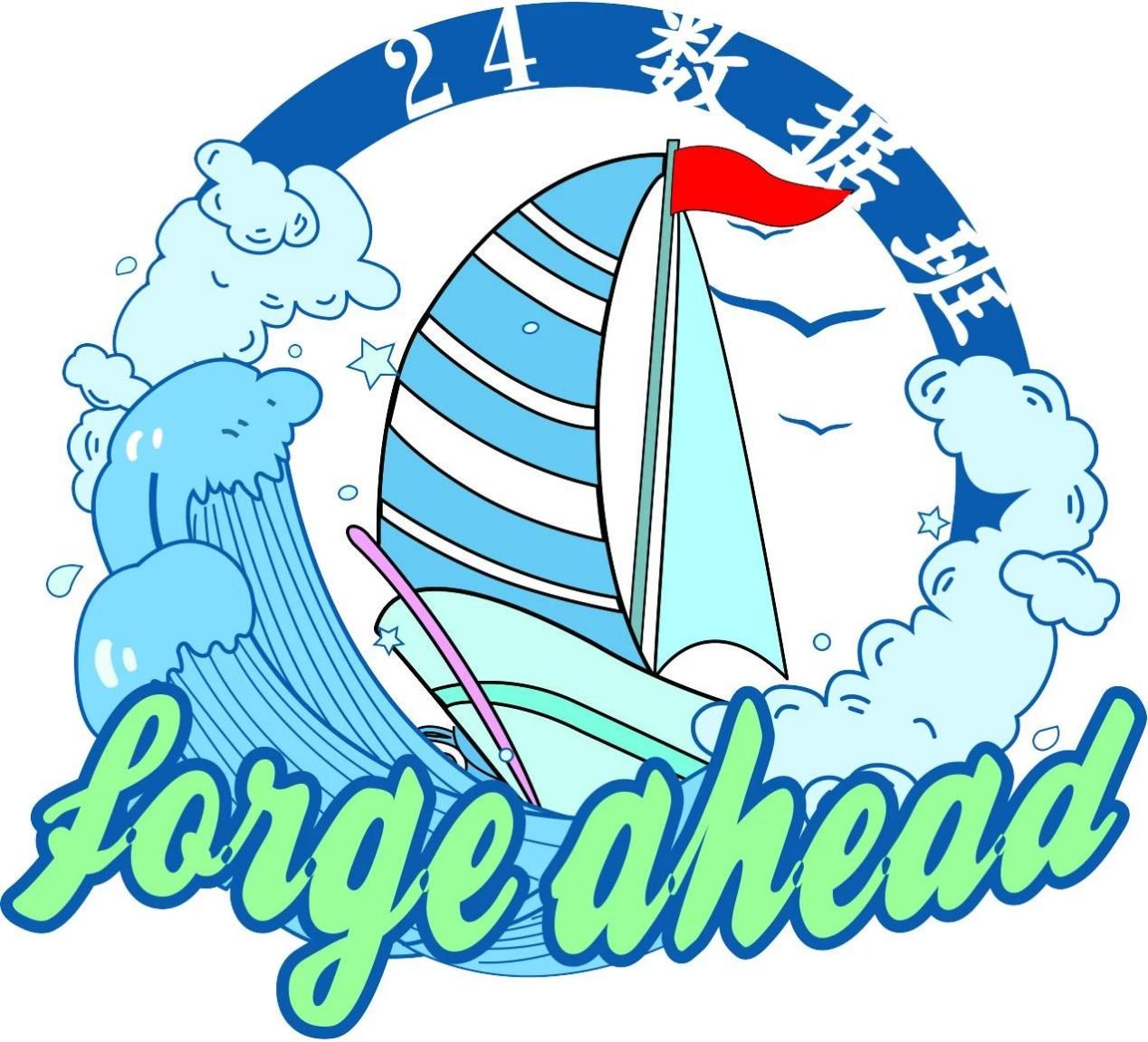 班徽用“帆船,海浪,红旗”等元素,将海浪与帆船融合,深蓝色的海浪环绕着白色的帆船,展现帆船在波涛中奋勇向前的姿态,凸显运动的激情与挑战。“红旗细节”寓意着我们24数据班,将在祖国母亲荣光的照耀下,扬帆起航,奋勇向前。