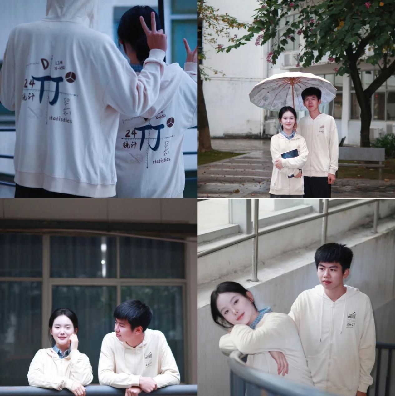 班服前胸的条形图与班徽相互呼应。下端的公式、“24数统”的缩写以及统计的英文,彰显出数统院统计学子耀眼的身份。背后“统计”的首字母经“π”变形而来,象征着统计学子无限的未来。背景中四个方向的坐标轴箭头,表达了对数统院多元培养的诚挚感谢,以及对统计班学子全面发展的殷切期待。