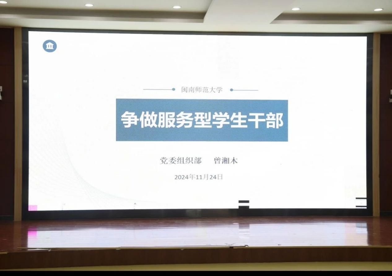 于11月24日下午在砺志楼120开展青马工程培训班第三讲——争做服务型的学生干部。本次培训邀请了校党委组织部干部科副科长曾湘木老师授课。