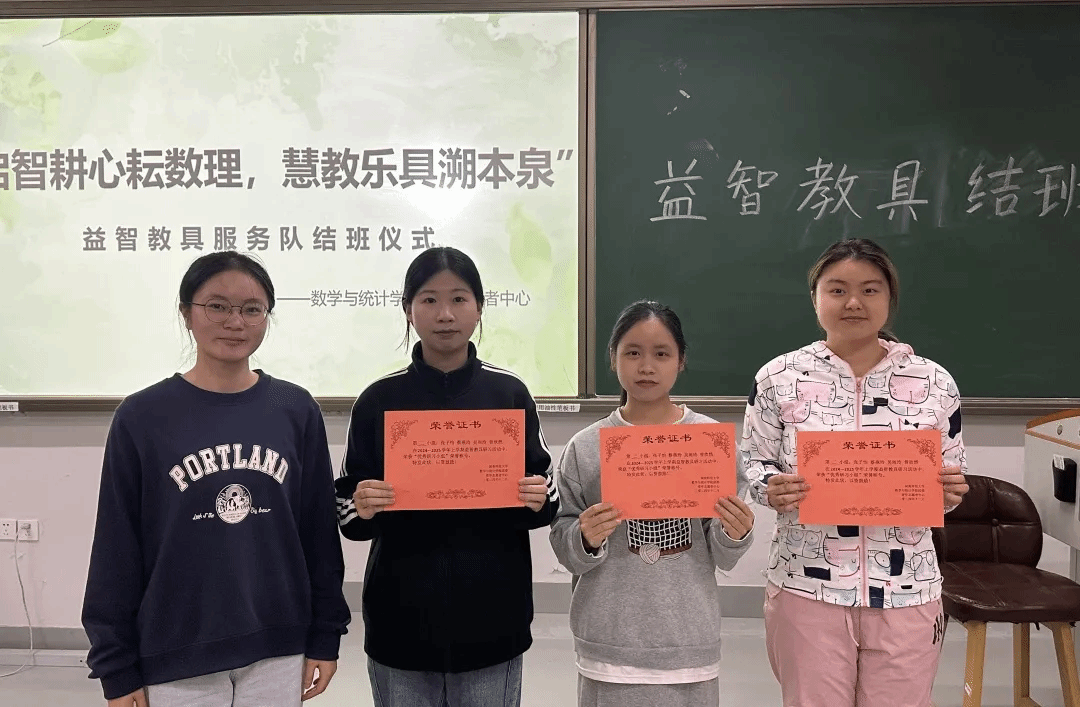 晨钟暮鼓,朝乾夕惕。在本学期益智教具活动中,第二小组以其优异表现被评选为优秀小组。服务队队长林燕婷为他们颁发证书并合影留念。