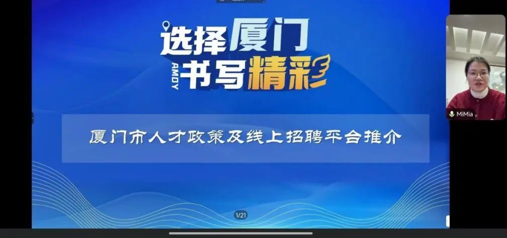 厦门市人才服务中心规划发展部部长沈珑介绍了厦门市对于毕业生的人才引进政策以及各区的补充政策,为毕业生提供了丰厚的优待政策和广阔的发展空间。同时,沈珑也推荐了“厦门人才网•校园云招聘平台”,该平台为广大毕业生提供了24小时不打烊的厦门专场招聘会,为全国各地高校毕业生提供与用人机关实时沟通交流的机会。