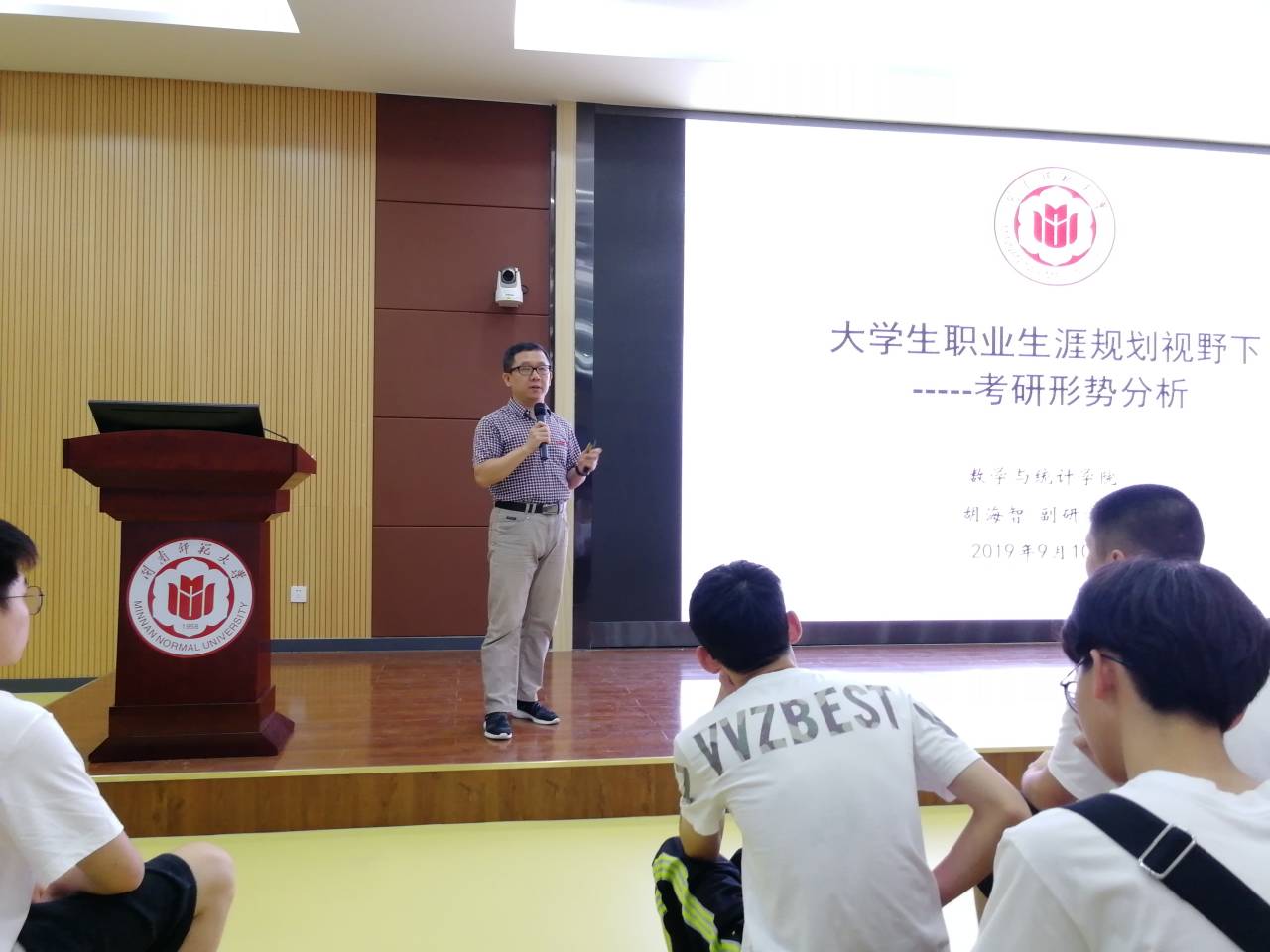 9月10日下午,学院副院长胡海智在砺志楼120为新生开展关于大学生职业规划视野下考研形势分析讲座。胡海智通过图表对近年来高校扩招,我国即将由高等教育大众化阶段进入普及化阶段的现状进行全面的介绍,深入分析了考研人数持续增长考研形势。并对全日制与非全日制学习方式、学术硕士与专业硕士的区别、推免生政策、研究生奖助政策、韩国av