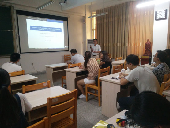 邀请,8月9日下午,厦门大学张剑文教授在励志楼105作了《Boundary-Layer Phenomena of the Compressible Navier-Stokes/MHD equations at small shear viscosity》的报告。相关师生聆听了此次报告,报告由李建喜副院长主持。