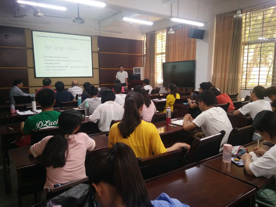 在报告中,戴伟忠教授首先介绍了薛定谔方程的相关知识;其次介绍了求解薛定谔方程的一种常用方法,即有限差分时间区域(FDTD)方法,并指出该方法的稳定性要求较高;戴伟忠教授接着引入一种广义的FDTD方法,该方法的优势在于其对于稳定性的要求降低;然后用实例解说了该方法的应用,如模拟粒子、soliton传播;最后戴伟忠教授作了简要的总结以及对未来的研究工作的展望。报告结束后,在座的老师和学生就相关研究问题进行了探讨和交流。