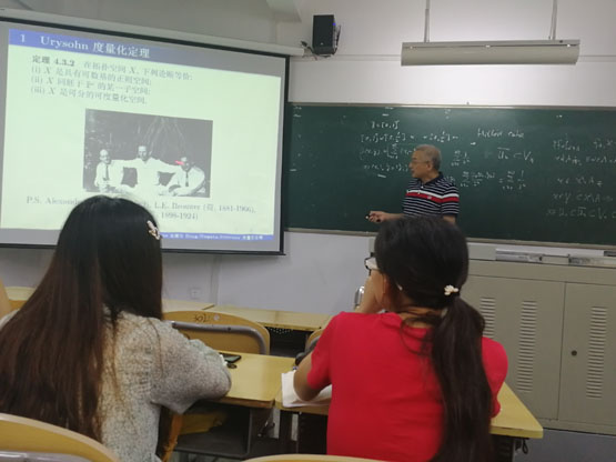 邀请,6月1日晚上,宁德师范学院林寿教授在砺志楼302作了《Stone定理与度量化定理》的报告。相关老师聆听了此次报告,报告由唐忠宝老师主持。