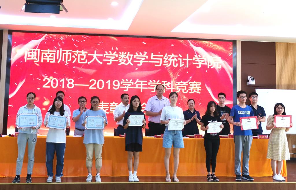 于砺志楼120教室举行2018-2019学年学科竞赛表彰大会。学院副院长林福财、黄韩亮、胡海智以及学院系主任、相关专任教师,受表彰的先进团体、教师和学生代表共同参加了大会。大会由学院党委副书记林晓老师主持。