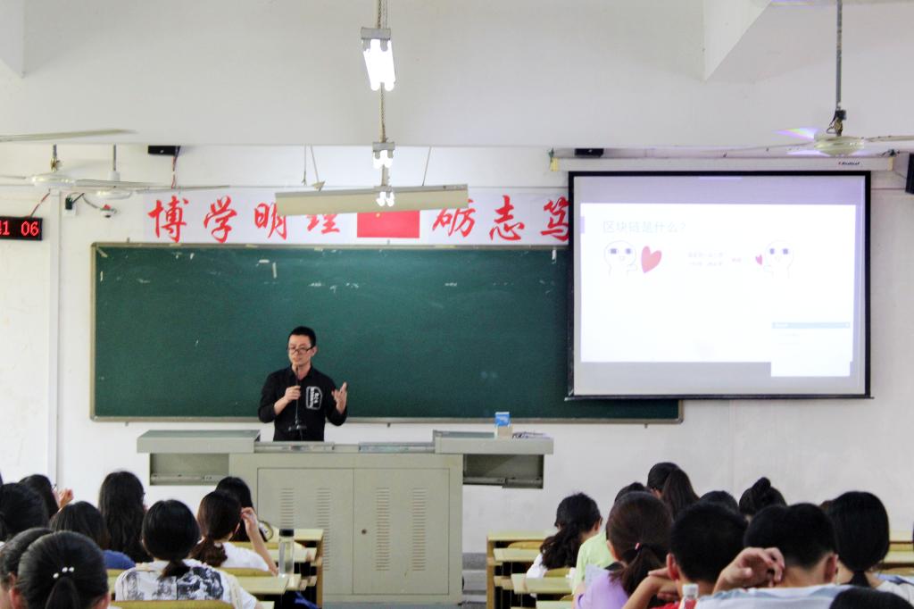 林老师详细地阐明了获取数据、管理数据、分析数据以及挖掘数据价值的基础知识和关键技术,包括数据可视化技术。同时他提出大数据行业的一些名人案例,与学生们分享对大数据行业的认知、一线企业的技术担当、在大数据行业实践中的心得体会和奇闻轶事、资深人力资源专家观点,帮助学生从更深层次了解大数据行业的从业情况。吴老师以区块链发展简史的介绍作为重点,分别从区块链的含义、发展、应用前景、政府支持和人才需求这几方面进行讲述,并在经典案例探讨的过程中,着重阐述区块链的前景未来、区块链职场的专业问题。在场学生与讲座嘉宾积极互动,受益匪浅。