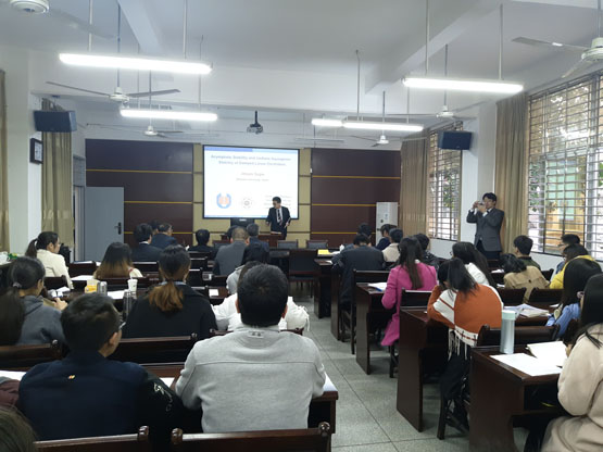 杉江实郎教授在报告中,首先讲述了在论文中应考虑方程式AS和UAS之间的目的、差异,其次分别阐述了关于AS和UAS的相关内容,接着介绍了3个定理及关于UAS之间的关系,最后概述了定理1的证明及关于UAS的例子。报告结束后,在座的老师和学生就相关研究问题进行了热烈的探讨和交流。